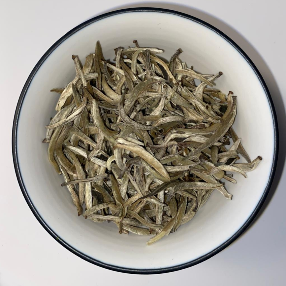 Merveilleux thé blanc constitué de bourgeons en forme d’aiguilles recouverts d’un duvet argenté.