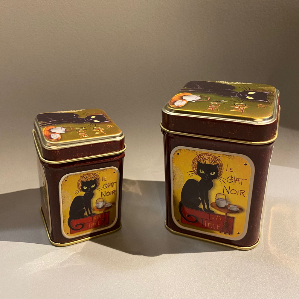 Jolie petite boite d'une contenance de 20g ou 50g avec un chat noir imprimé dessus